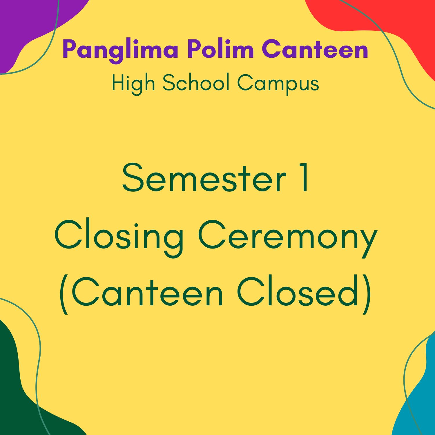 12 Dec Fri – Semester 1 Closing Ceremony – canteen closed